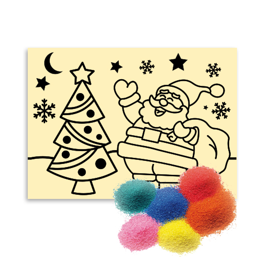 Planșă pentru colorat / desenat cu nisip. Model "Moș Crăciun și Brad".